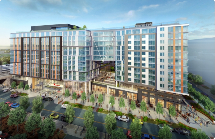 Construction debt for mixed-use project in Washington, DC including 500 apartments, 235 hotel keys, and 40,000 sq. ft. of retail.